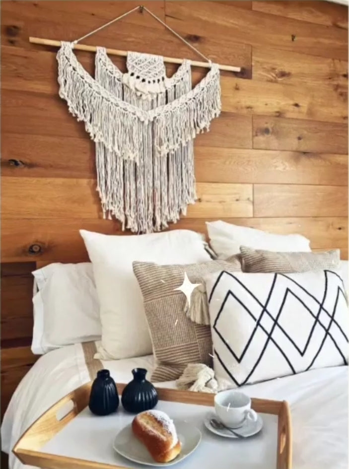 El Tapiz Nómada es la pieza central que tu espacio ha estado esperando. Tejido a mano con dedicación y paciencia, cada nudo cuenta una historia de calma y conexión con lo esencial. Su diseño, inspirado en la fluidez de las formas orgánicas, aporta textura y una calidez inigualable a cualquier pared de tu hogar.